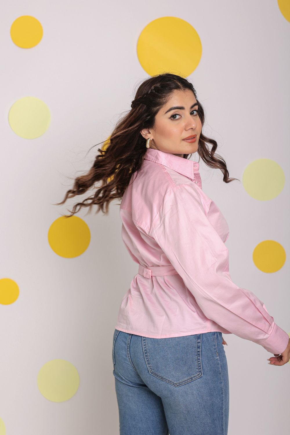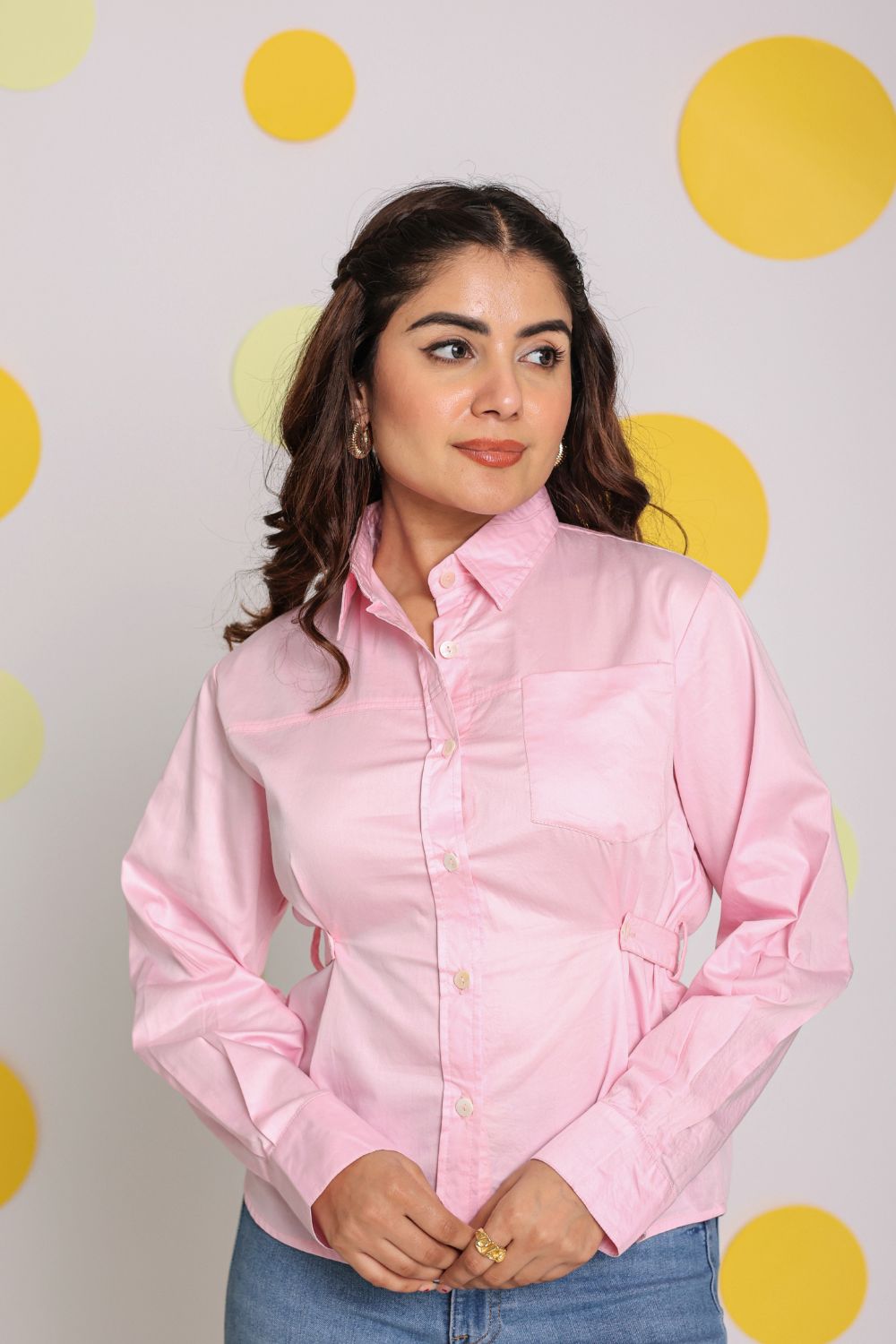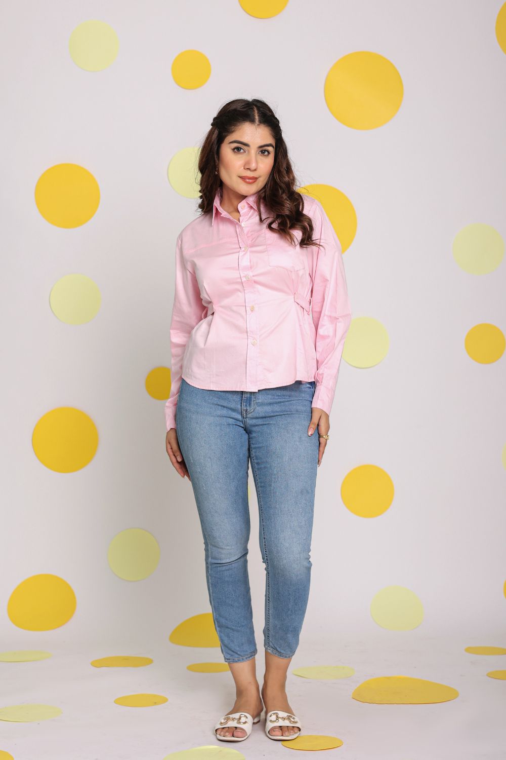 Solid Baby Pink Collared Full Sleeve Buttoned 100% Cotton Top