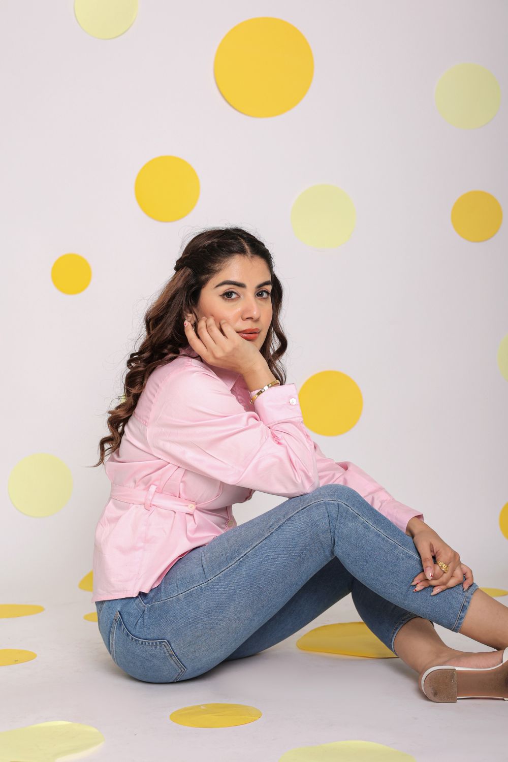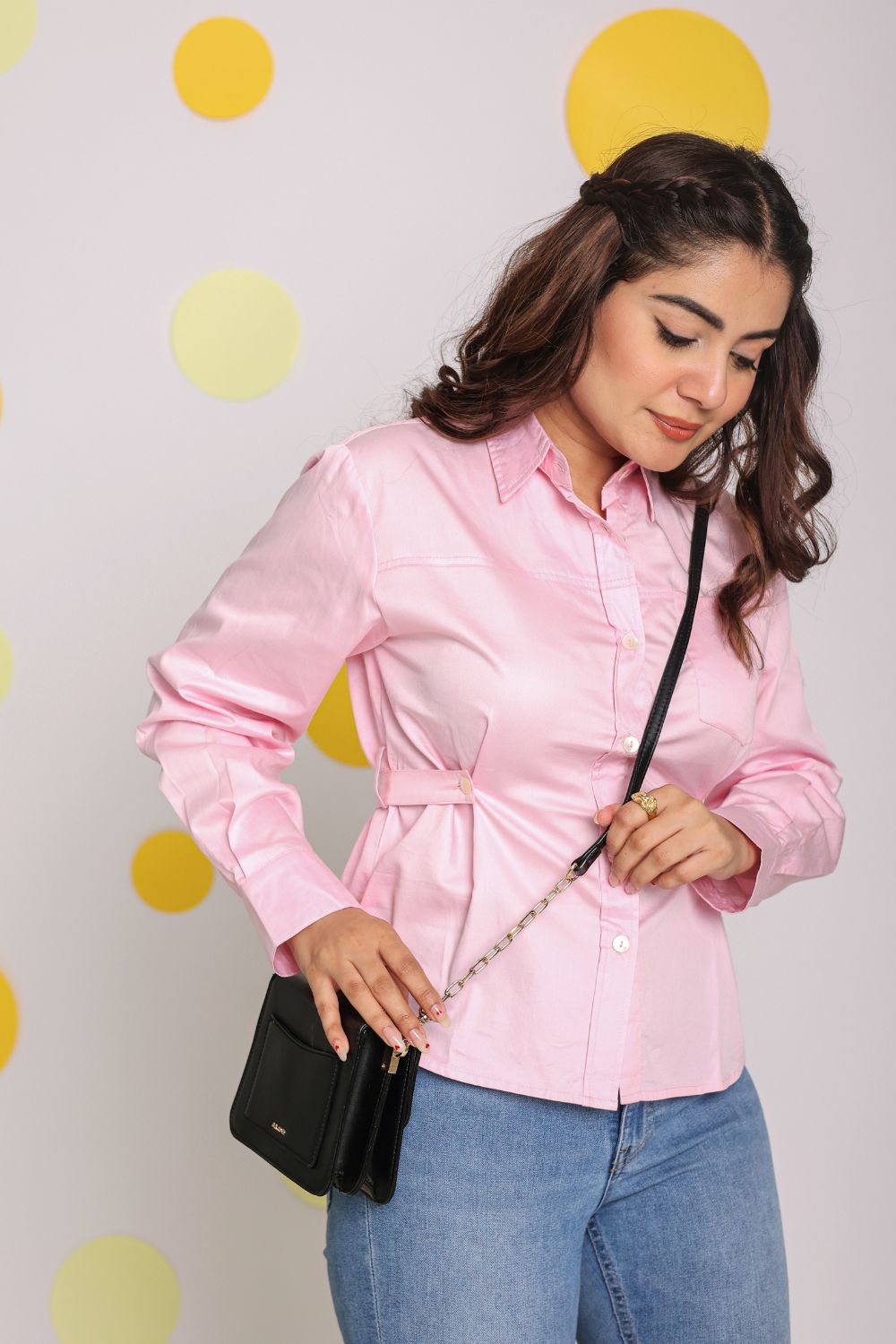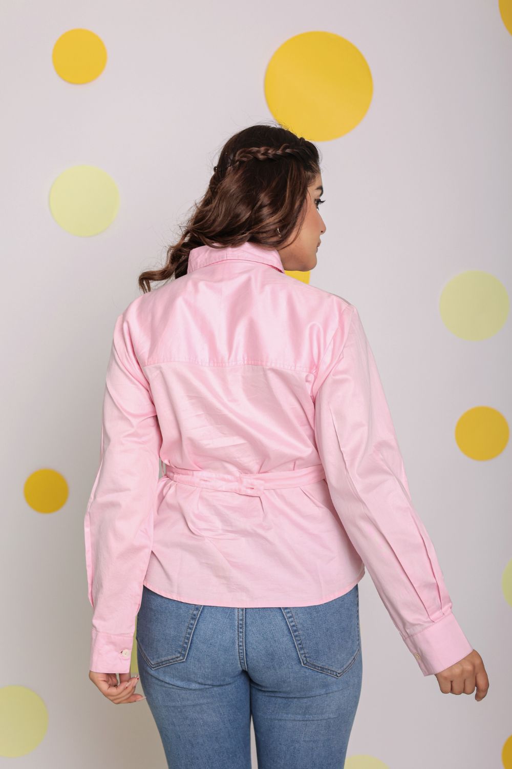 Solid Baby Pink Collared Full Sleeve Buttoned 100% Cotton Top