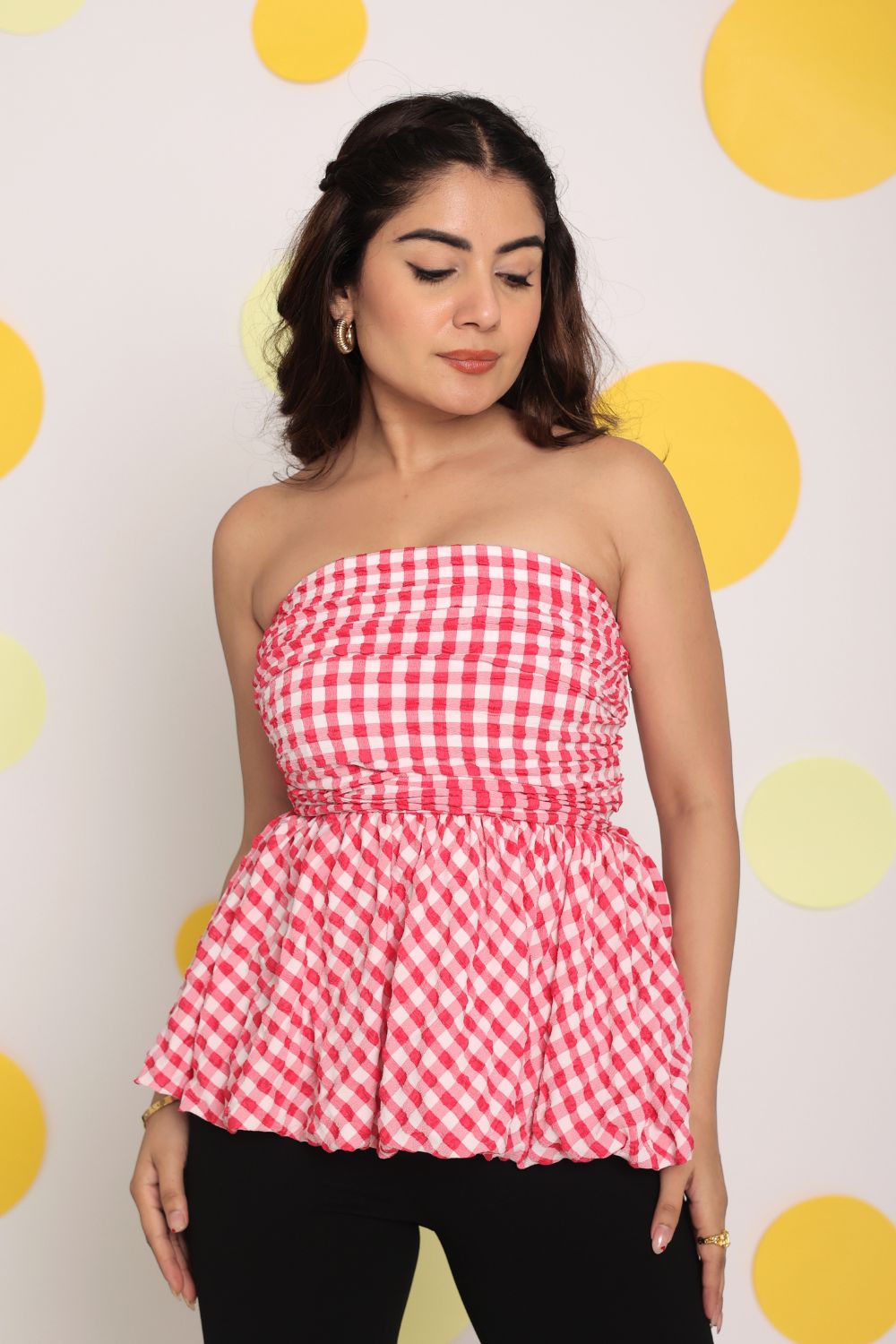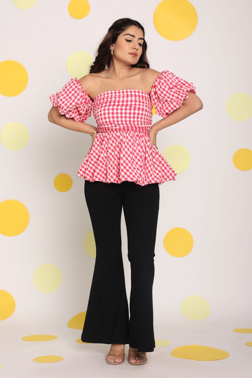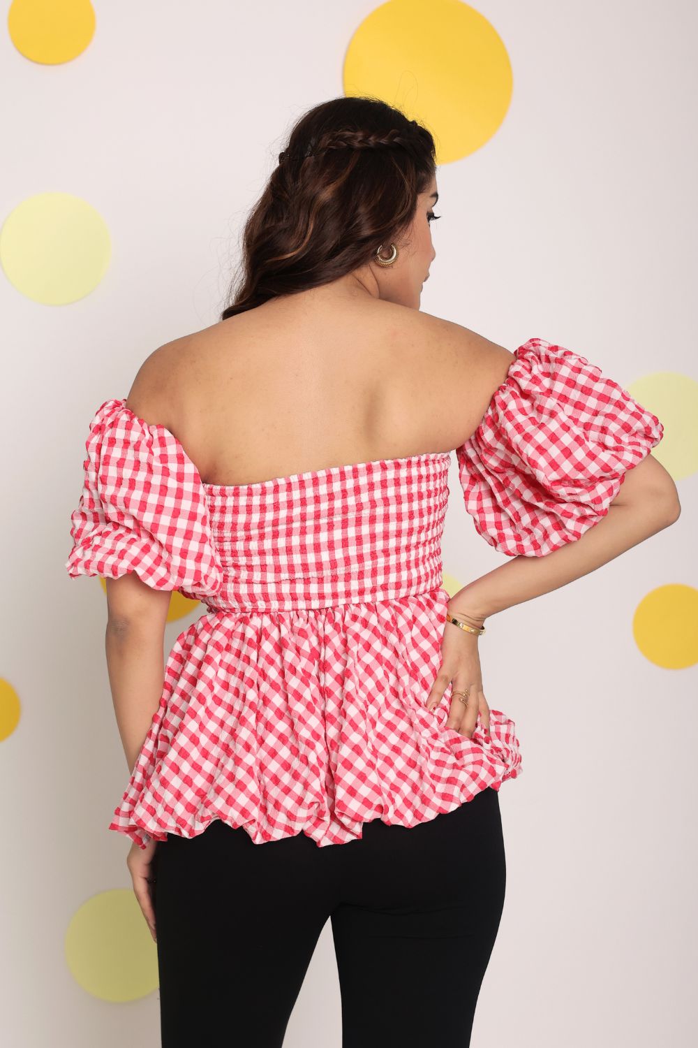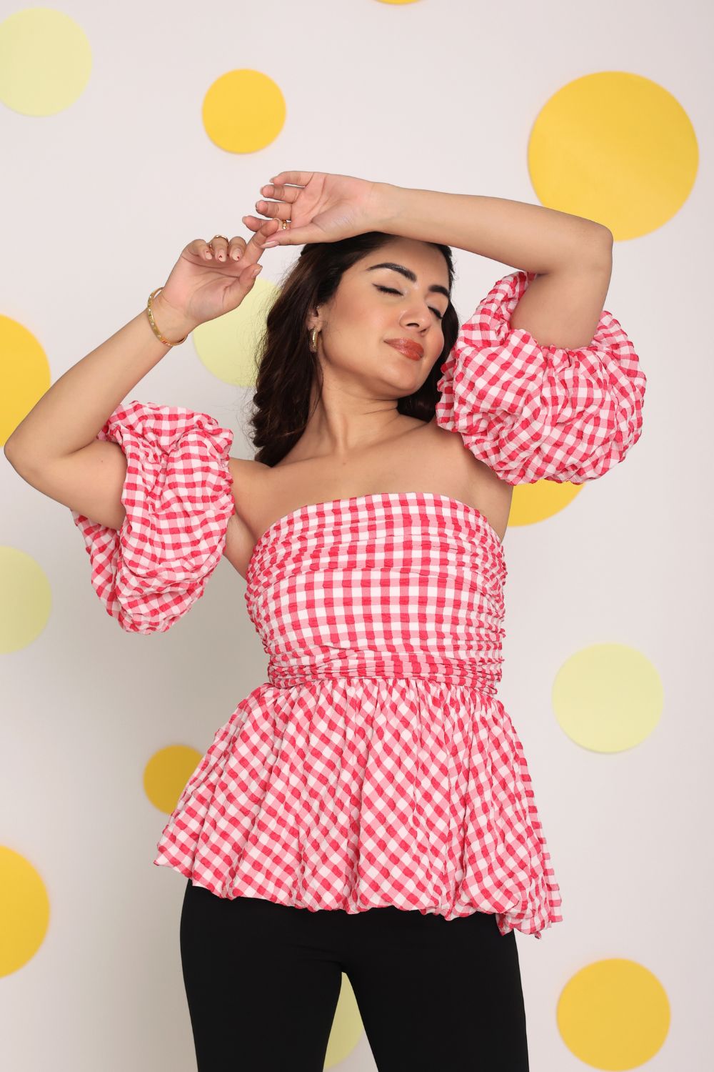 White and Pink Bubble 3 Way Styling Bust Fitted Top with Detachable Short Balloon Sleeves