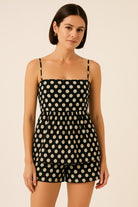 Women Polka dot Cotton Linen Peplum Strap Top with Elastic Waist Shorts Co-ord Set – Holiday, Lounge & Nightsuit Wear